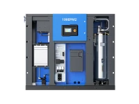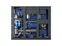 Ротор двигателя с постоянными магнитами установлен непосредственно на вал винтового блока, без шестерен или ремней, без муфты, нулевые потери передачи, простота установки, отсутствие необходимости регулировки, лучшая защита внутренних частей двигателя с постоянными магнитами. В двигателе с постоянными магнитами нет подшипника, поэтому двигатель не требует обслуживания на 100%, что снижает затраты на техническое обслуживание компрессора в целом