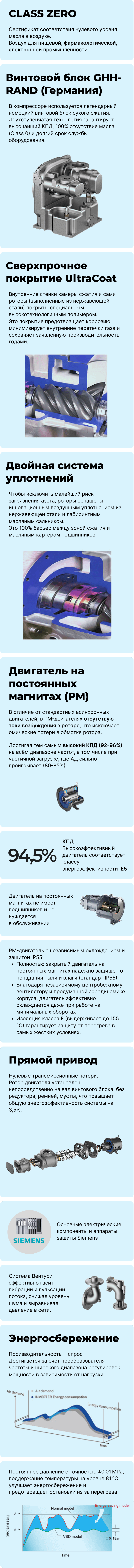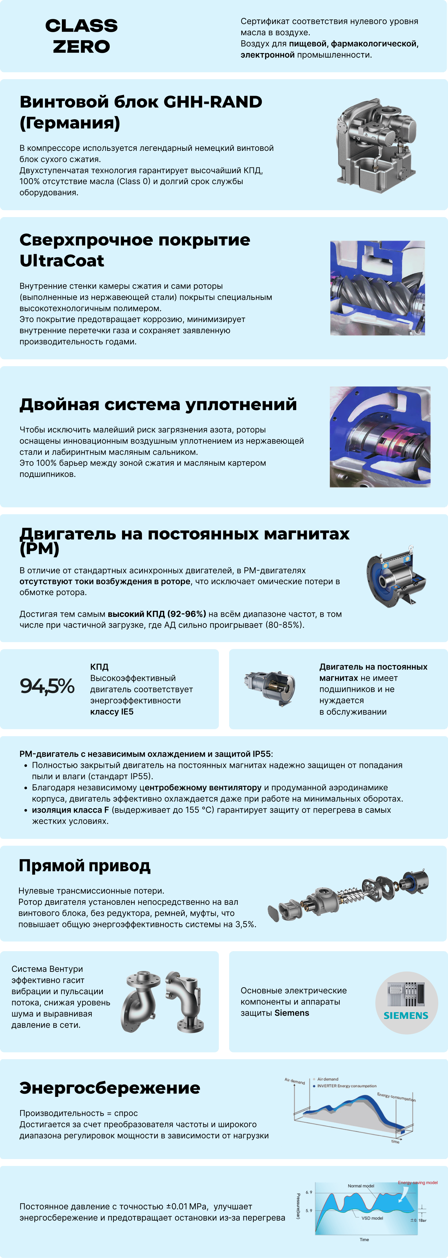 Это премиальное решение для предприятий химической, электронной, фармацевтической и пищевой промышленности, где сжатый азот используется в качестве инертной среды, а наличие масляных паров недопустимо.
