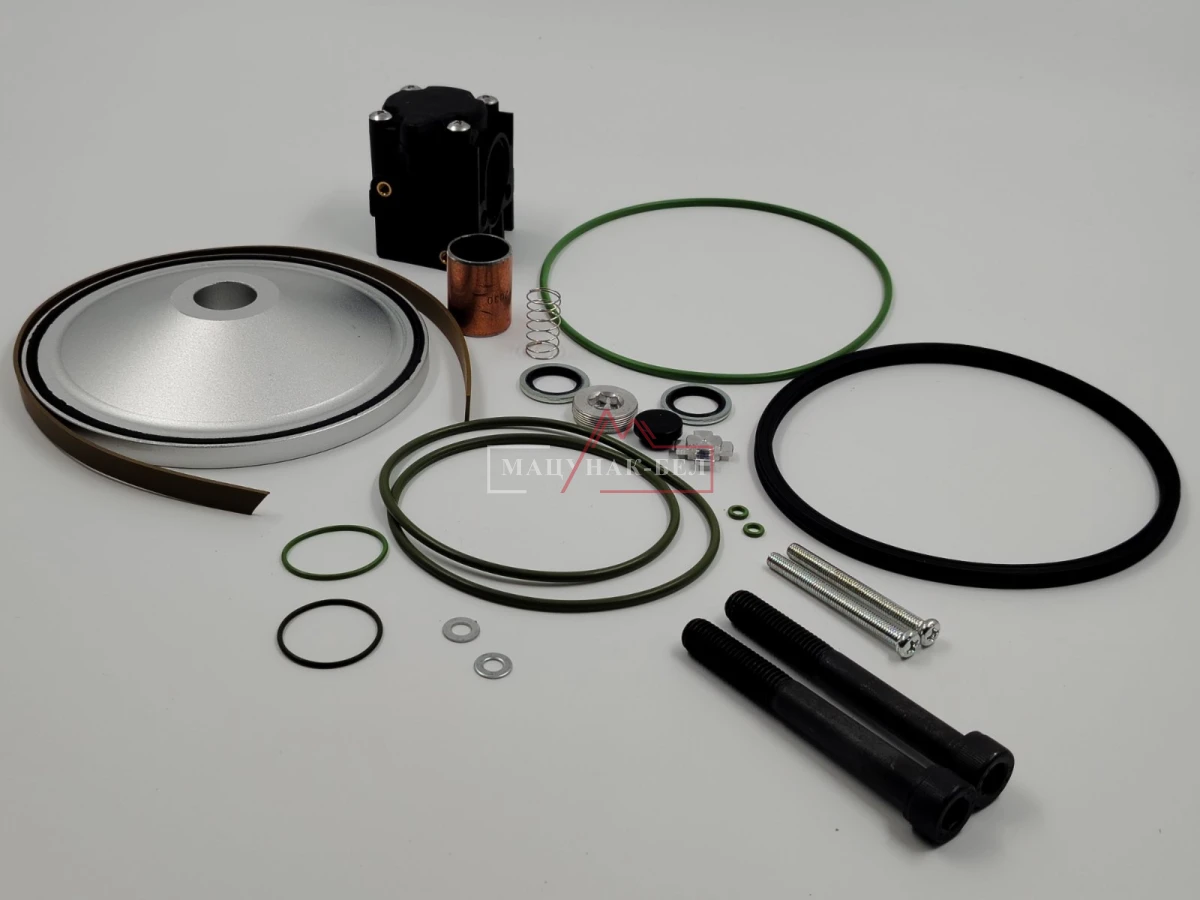 Ремкомплект применяется для ремонта и профилактического обслуживания разгрузочного клапана, который регулирует подачу воздуха в компрессорную камеру. Замена изношенных деталей позволяет восстановить герметичность, снизить потери давления и обеспечить стабильную работу компрессора при переходах между рабочими режимами.