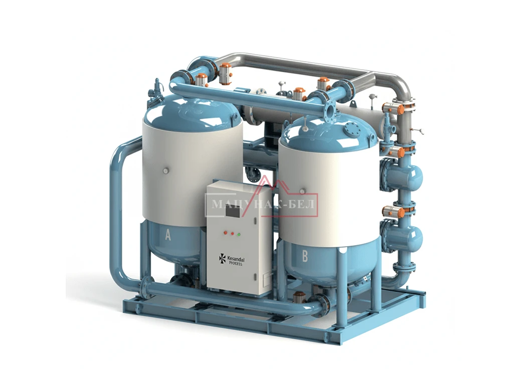 Однако главное отличие от MCW заключается в том, что процесс идет с нулевыми потерями (0%) сжатого воздуха. После того как горячий воздух забирает влагу из адсорбента, он не сбрасывается в атмосферу, а проходит через водяной охладитель и возвращается в систему. Это идеальное решение для крупных промышленных предприятий (от 45 до 300 м³/мин) с безмасляными компрессорами, где требуется максимальная экономия как электроэнергии, так и производимого сжатого воздуха.